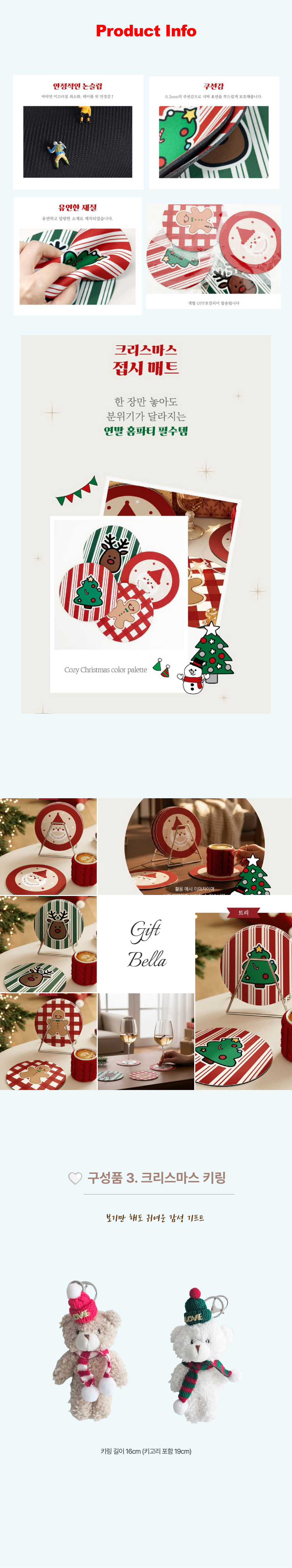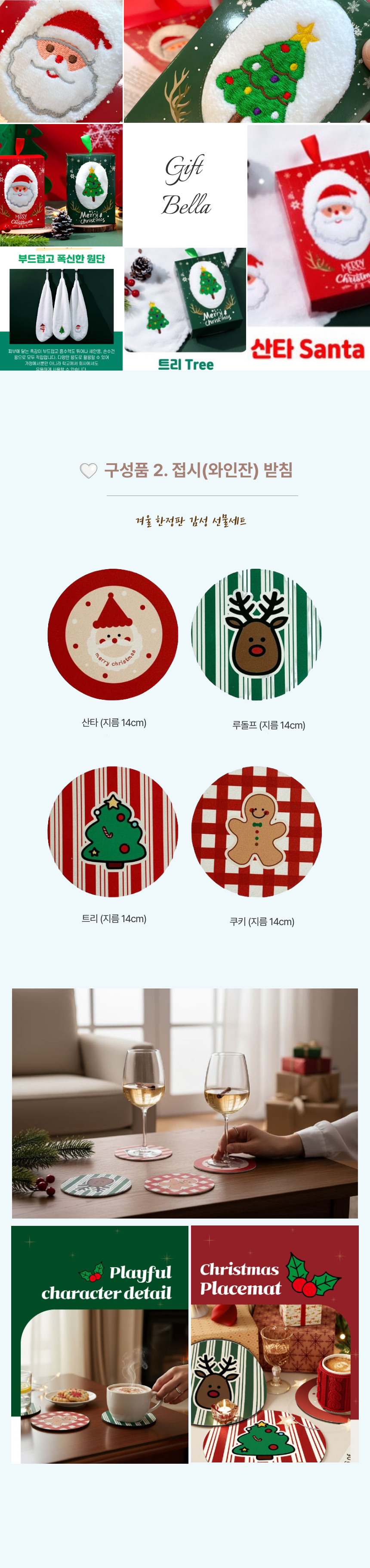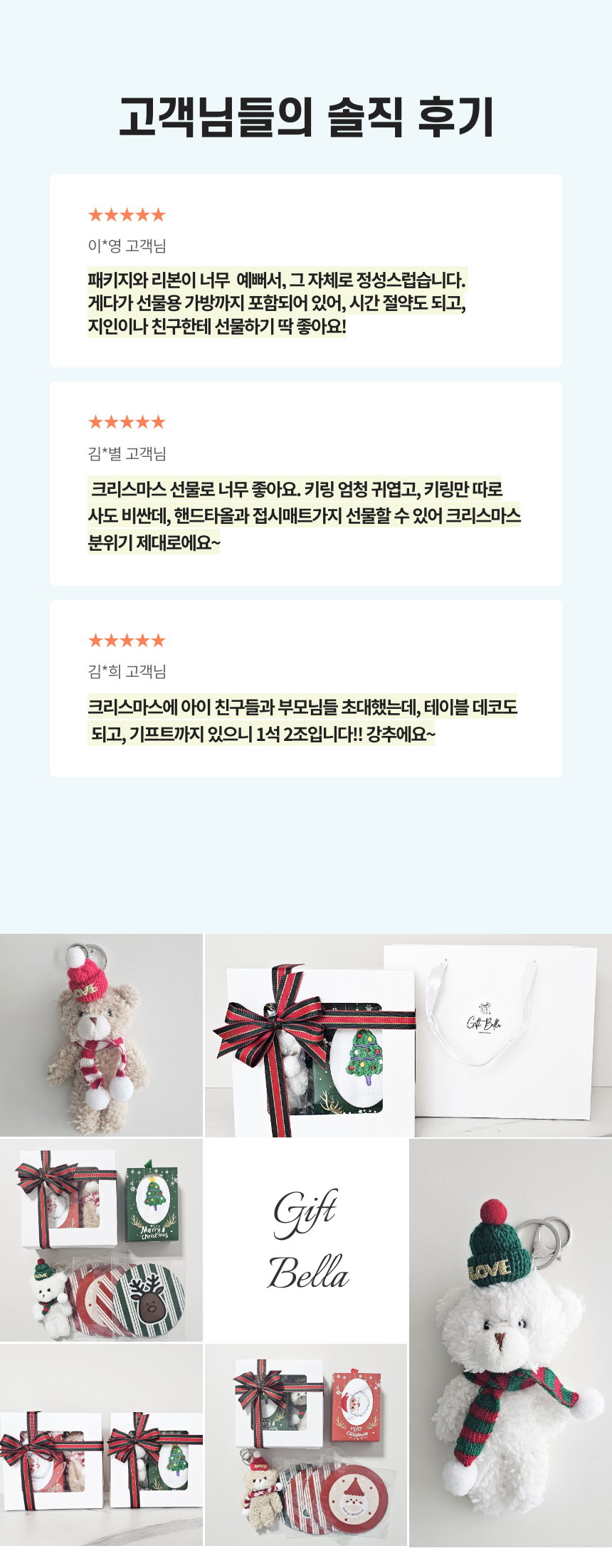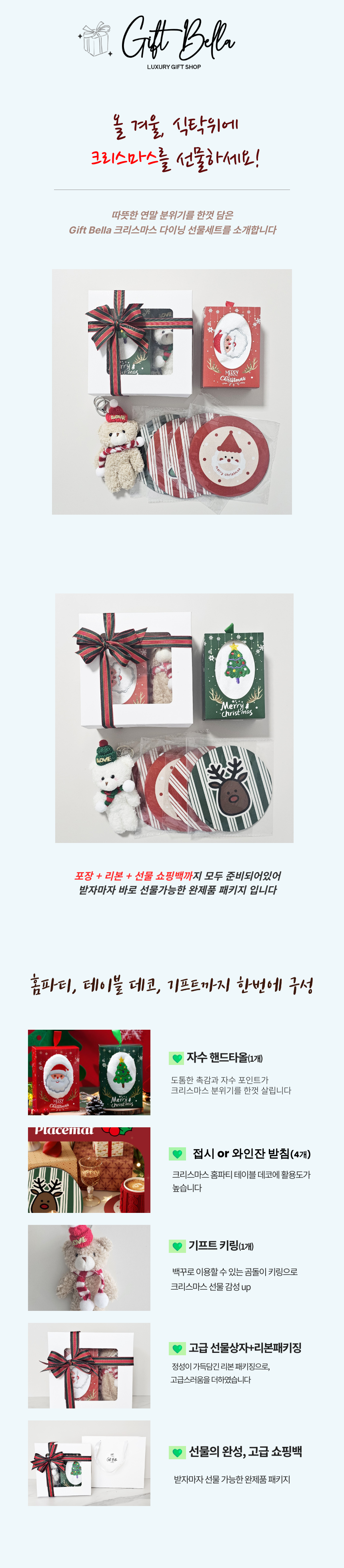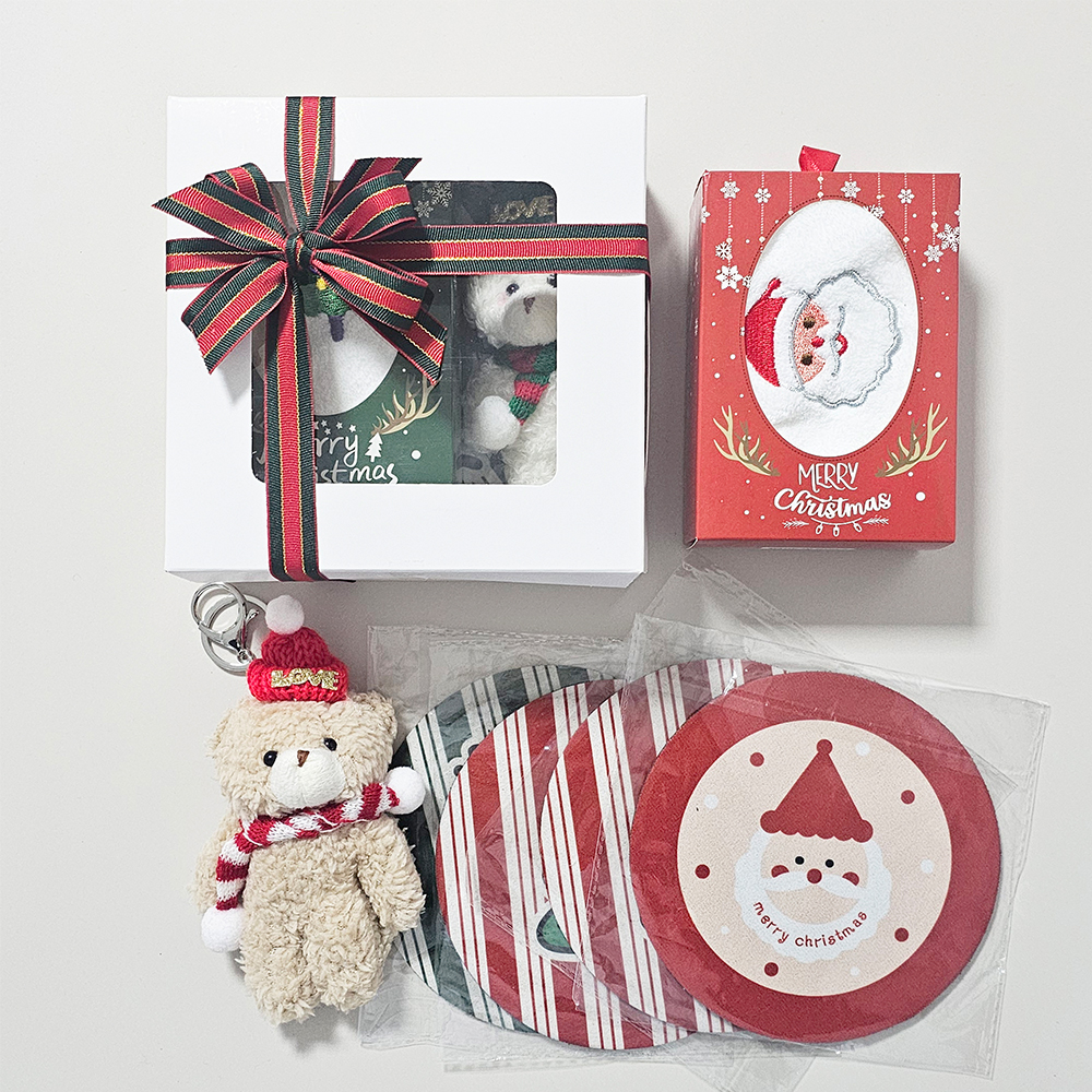 크리스마스 선물 핸드타올+접시받침+키링+선물가방 8pcs